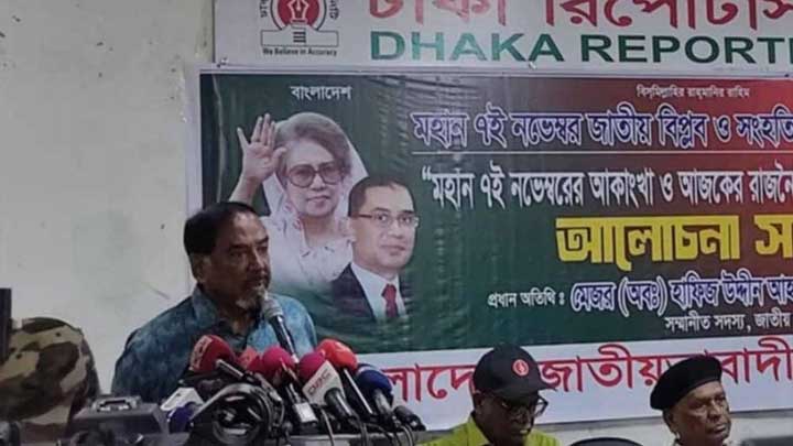 বৈষম্যবিরোধী আন্দোলনের নেতারা গণতান্ত্রিক সমাজ বিনির্মাণে বিশ্বাসী নয় বলে মন্তব্য করেছেন বিএনপির স্থায়ী কমিটির সদস্য মেজর (অব.) হাফিজ উদ্দিন আহমেদ। তিনি বলেন, অল্প সময়ের মধ্যে নির্বাচন কমিশন সংস্কার করে নির্বাচন দেন, নির্বাচিত জনপ্রতিনিধি দেশ সংস্কার করবে। সোমবার (১১ নভেম্বর) ঢাকা রিপোর্টাস ইউনিটির নসরুল হামিদ হলে ‘৭ নভেম্বর আকাঙ্ক্ষা ও আজকের রাজনীতর প্রেক্ষাপট’ শীর্ষক আলোচনা সভায় তিনি এ মন্তব্য করেন।