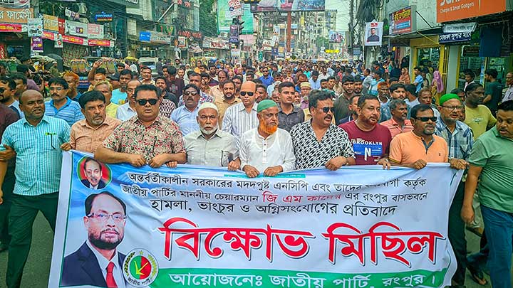 রংপুরে জিএম কাদেরের বাড়িতে হামলা-ভাংচুরের প্রতিবাদ ও হামলাকারীদের দ্রুত গ্রেফতারের ২৪ ঘন্টার আল্টিমেটাম দিয়েছে জাতীয়পার্টি।