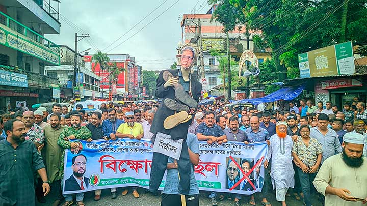 রংপুরে জাতীয় পার্টি থেকে বহিস্কৃত সাবেক তিন নেতাকে দালাল আখ্যায়িতকওে কুশপুত্তলিকা দাহ করেছে নেতাকর্মীরা। বুধবার (১৩ আগস্ট) বিকেলে সেন্ট্রাল রোডস্থ জাতীয় পার্টির দলীয় কার্যালয়ে জাতীয় পার্টির চেয়ারম্যান জিএম কাদেরসহ অন্যান্য সকল নেতাকর্মীর নামে মিথ্যা মামলা প্রত্যাহার, দেশের আইন শৃঙ্খলা পরিস্থিতির অবনতি ও মবভায়োলেন্স বন্ধের দাবিতে করা বিক্ষোভ সমাবেশে জাপার বহিস্কৃত সাবেক নেতা রুহুল আমিন হাওলাদার, আনিসুল ইসলাম মাহমুদ ও মুজিবুলহক চুন্নুকে রংপুর বিভাগে অবাঞ্চিত ঘোষণা করেন, দলটির কো-চেয়ারম্যান মোস্তাফিজার রহমান মোস্তফা। এসময় উপস্থিত ছিলেন, জাতীয় পার্টিও ভাইস চেয়ারম্যান এসএম ইয়াসির আহম্মেদ, জেলা জাতীয় পার্টির সাধারণ সম্পাদক আবদুর রাজ্জাকসহ অন্যরা।