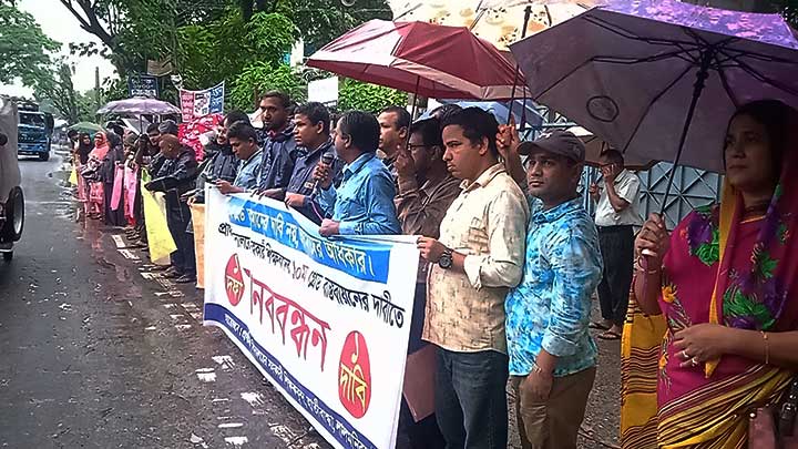 উপজেলার উত্তর বিছনদই আবুল কাশেম সরকারি প্রাথমিক বিদ্যালয়ের সহকারি শিক্ষক আবু সালে মোঃআরিফবিল্লাহর সঞ্চালনায় এক দফা দাবি আদায়ের লক্ষে সহকারি শিক্ষকদের ১০ম গ্রেড বাস্তবায়ন ও সমন্বয়ক পরিষদের ব্যানারে মানববন্ধনে বক্তব্য দেন, পূর্ববেজগ্রাম সরকারি প্রাথমিক বিদ্যালয়ের সহকারি শিক্ষক আরিফুজ্জামান পাভেল, বড়খাতা সরকারি প্রাথমিক বিদ্যালয়ের প্রধান শিক্ষক মাসুদা আক্তার কল্পনা, পশ্চিম হলদিবাড়ি স্কুলের সহকারি শিক্ষক আমিনুর রহমান , উত্তর বিছনদই স্কুলের সহকারি শিক্ষক আবু কালাম মোঃজালাল উদ্দিন, গেন্দুকুড়ি স্কুলের প্রধান শিক্ষক এরশাদ হোসেন লেলিন ,ঠ্যাংঝারা স্কুলের প্রধান শিক্ষক মজিবর রহমানসহ অনেকে।