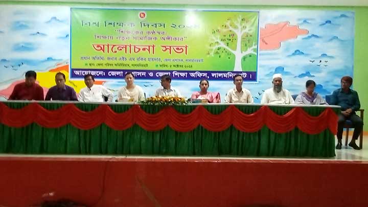 "শিক্ষকের কন্ঠস্বর: শিক্ষায় নতুন সামাজিক অঙ্গিকার "এই প্রতিপাদ্যকে সামনে রেখে লালমনিরহাটে জেলা প্রশাসন ও জেলা শিক্ষা অফিসের আয়োজনে সকাল ৯ টায় জেলা পরিষদ মিলনায়তনে থেকে র্যালী বের হয়ে প্রধান প্রধান সড়ক প্রদক্ষিণ করে আবার জেলা পরিষদ মিলনায়তনে শেষ হয়। র্যালী শেষে অতিরিক্ত প্রশাসক শিক্ষা ও আইসিটি নুরে তাসনিম এর সভাপতিত্বে জেলা পরিষদ মিলোনায়তনে আলোচনা সভা অনুষ্ঠিত হয়।