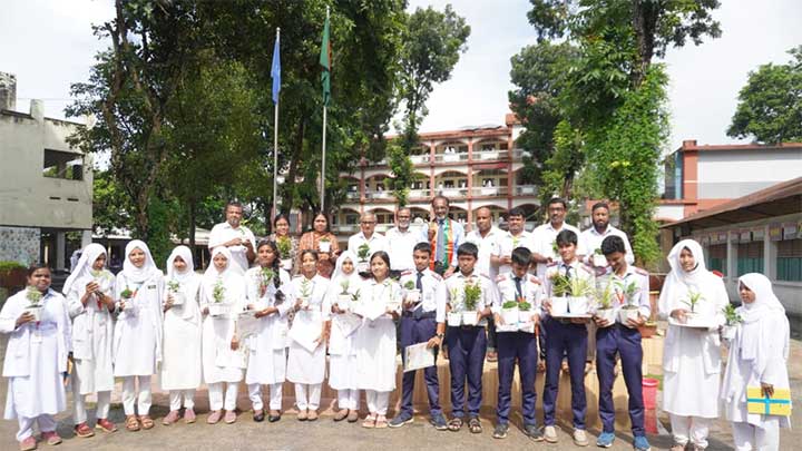 অনুষ্ঠানে প্রধান অতিথি হিসেবে উপস্থিত ছিলেন আন্তর্জাতিক খ্যাতিসম্পন্ন পরিবেশবিদ মোহাম্মদ রিয়াল আহসান। তিনি বলেন, জলবায়ু পরিবর্তন একটি বৈশ্বিক চ্যালেঞ্জ। এ চ্যালেঞ্জ মোকাবেলায় তরুণ প্রজন্মকে এগিয়ে আসতে হবে। শিক্ষার্থীরা নিয়মিত গাছ লাগানো, প্লাস্টিক ব্যবহার কমানো, পুনর্ব্যবহারযোগ্য সামগ্রী ব্যবহার ও পরিচ্ছন্নতার চর্চার মাধ্যমে টেকসই পরিবেশ নিশ্চিত করতে পারে। পাশাপাশি পানি, বিদ্যুৎ ও কাগজের সাশ্রয়ও জলবায়ু দূষণ রোধে গুরুত্বপূর্ণ ভূমিকা রাখবে।