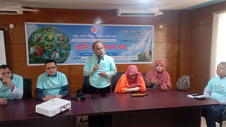 ‘স্বাস্থ্যসেবায় বিজ্ঞান, সুরক্ষিত সকল প্রাণ’ প্রতিপাদ্যকে সামনে রেখে বিশ্ব স্বাস্থ্য দিবসে রংপুরে আলোচনা সভা হয়েছে। মঙ্গলবার (৭ এপ্রিল) দুপুরে সিভিল সার্জন অফিসে