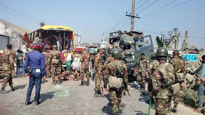 লালমনিরহাটে ড্রাম ট্রাকের ধাক্কায় পুলিশবাহী একটি ট্রাক দুর্ঘটনার শিকার হয়ে ১৫ জন পুলিশ সদস্য আহত হয়েছেন। সোমবার (আজ) সকাল সাড়ে ৬টার দিকে জেলার