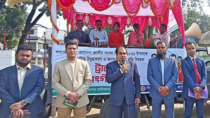 জুলাই জাতীয় সনদ ও গণভোটের রায় বাস্তবায়নের দাবীতে রংপুরে বিক্ষোভ মিছিল ও সমাবেশ করেছে এগারো দলীয় ঐক্য।