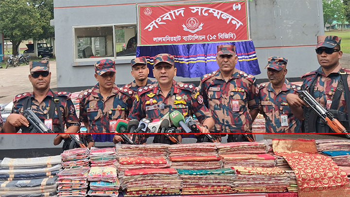 লালমনিরহাট ১৫ বিজিবি ব্যাটালিয়নের আওতাধীন সীমান্ত এলাকায় চোরাচালানবিরোধী বিশেষ অভিযানে বিপুল পরিমাণ ভারতীয় শাড়ি ও প্যান্টের পিস জব্দ করা হয়েছে