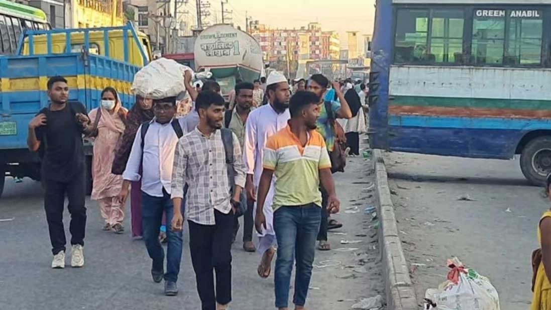 নওগাঁ থেকে স্ত্রী-সন্তান নিয়ে আসা যাত্রী শরিফ আহমেদ বলেন, ‘সকালে ভোগড়া বাইপাস মোড়ে বাস থেকে নেমে ঢাকায় যাওয়ার কোনো যানবাহন না পেয়ে দুই সন্তান, স্ত্রী ও দুটি ব্যাগ নিয়ে অনেক কষ্ট করে এক কিলোমিটারের মতো পথ হেঁটে এসেছি। এখন আর পারছি না। জানতে পারলাম আরও এক কিলোমিটার পথ হেঁটে পার হলে কিছু একটা পাওয়া যেতে পারে।’