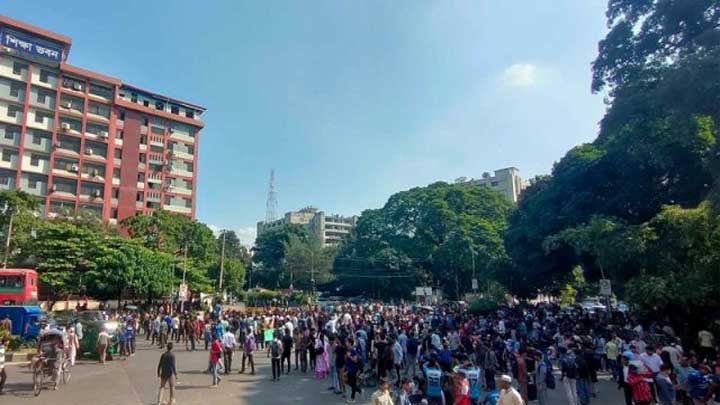 জগন্নাথ বিশ্ববিদ্যালয়ের (জবি) দ্বিতীয় ক্যাম্পাসের কাজ সেনাবাহিনীকে হস্তান্তরসহ তিন দফা দাবিতে শিক্ষা মন্ত্রণালয়ের সামনে শিক্ষা অধিকার চত্বর অবরোধ করেছেন শিক্ষার্থীরা। সোমবার (১১ নভেম্বর) ১১টা নাগাদ ক্যাম্পাস থেকে শিক্ষার্থীরা একটি গণপদযাত্রা নিয়ে শিক্ষা মন্ত্রণালয় অভিমুখে যাত্রা করেন। পদযাত্রায় বিশ্ববিদ্যালয়ের ২ হাজারের বেশি শিক্ষার্থী অংশ নেন। এদিকে অবরোধের কারণে রাজধানীর বিভিন্ন জায়গায় যাওয়ার পাঁচটি মুখে তীব্র যানজট সৃষ্টি হয়েছে।