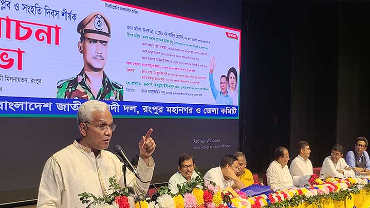বৃহস্পতিবার (১৪ নভেম্বর )সকাল ১০ রংপুর জেলা শিল্পকলা একাডেমিতে অনুষ্ঠিত ঐতিহাসিক ৭ ই নভেম্বর বিপ্লব ও সংহতি দিবস শীর্ষক আলোচনা সভায় একথা বলেন তিনি।তিনি আরো বলেন, বর্তমান উপদেষ্টা পরিষদে আওয়ামী লীগের দোসর ও যোগ্যতাহীন ব্যাক্তিও নিয়োগ পেয়েছে। বিতর্কিত উপদেষ্টা নিয়োগ হলে দেশের মানুষ প্রতিহত করবে বলে মন্তব্য করেন।এসয় বিএনপি'র পক্ষ থেকে অন্তর্র্বতীকালীন সরকারকে সহযোগিতা করার কথা জানান তিনি।একই সাথে বিপ্লব পরবর্তী পরিবর্তনমুখী মানুষগুলোকে দীর্ঘ সময় ভোট বিমুখ করে না রাখার আহ্বানও তার।