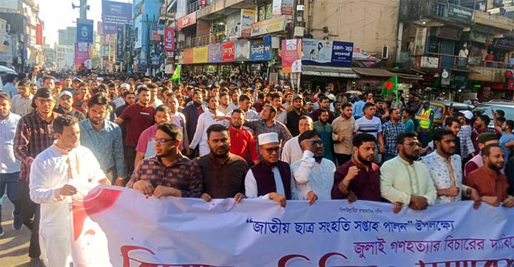 দীর্ঘ ১৫ বছর পর সিলেটে বিশাল বিক্ষোভ মিছিল ও সমাবেশ করেছে ছাত্রশিবির। বুধবার (২৭ নভেম্বর) দুপুর ২টা ৪০ মিনিটে জুলাই গণহত্যার বিচারের দাবিতে জাতীয় ছাত্রসংহতি সপ্তাহ পালন উপলক্ষে এ কর্মসূচি পালন করে দলটি। সিলেট মহানগর ছাত্রশিবিরের আয়োজনে নগরীর রেজিস্ট্রারি মাঠ থেকে মিছিলটি বের করা হয়। পরে বন্দরবাজার, জিন্দাবাজার ও চৌহাট্টা হয়ে আম্বরখানা পয়েন্টে গিয়ে শেষ হয়। মিছিলে বিভিন্ন ধরনের প্রতিবাদী স্লোগান দেন নেতাকর্মীরা।