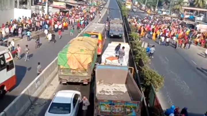 নাওজোড় হাইওয়ে থানার ভারপ্রাপ্ত কর্মকর্তা রইছ উদ্দিন জানান, চন্দ্রা এলাকায় একটি কারখানার শ্রমিকরা সড়ক অবরোধ করে রাখার কারণে মহাসড়কে যানবাহন চলাচল বন্ধ রয়েছে।