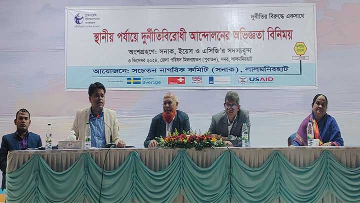 লালমনিরহাট: সচেতন নাগরিক কমিটি (সনাক), লালমনিরহাট এর উদ্যোগে আজ সকাল ১০টায় শহরের জেলা পরিষদ মিলনায়তনে (পুরাতন) স্থানীয় পর্যায়ে দুর্নীতিবিরোধী আন্দোলনের অভিজ্ঞতা বিনিময় সভা অনুষ্ঠিত হয়।