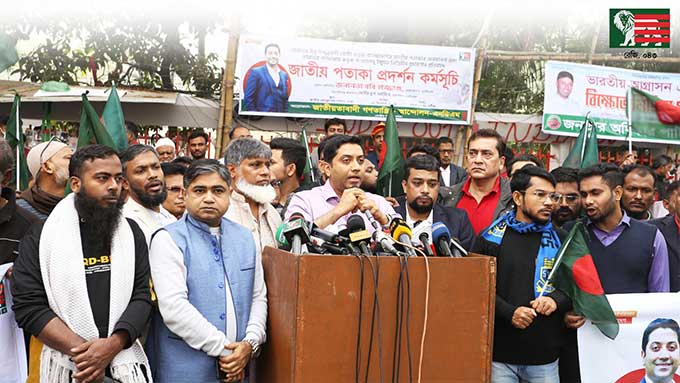 জাতীয় পতাকা প্রদর্শন কর্মসূচিতে সভাপতির বক্তব্যে এনডিএম মহাসচিব মোমিনুল আমিন বলেন, "বাংলাদেশের এক ইঞ্চি মাটির দিকে কেউ আগ্রাসী দৃষ্টি নিয়ে তাকালে আমরা শকুনের মত চোখ উপড়ে ফেলব।"