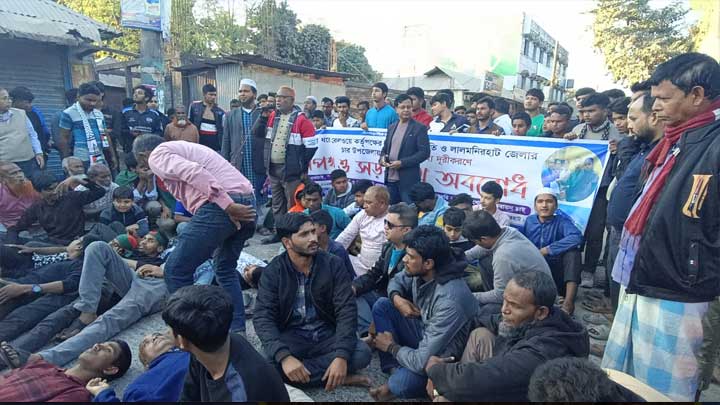মঙ্গলবার (১৭ ডিসেম্বর) দুপুর থেকে হাতীবান্ধা রেলস্টেশনে রেলপথ ও বন্দরে লালমনিরহাট বুড়িমারী মহাসড়ক অবরোধ করেন সচেতন জনগন।