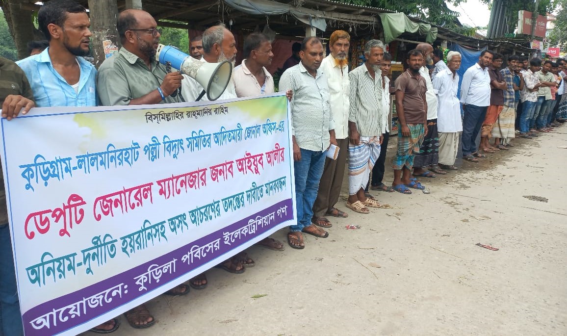 মঙ্গলবার (০১ অক্টোবর) দুপুরে আদিতমারী উপজেলার ঢাকা-বুড়িমারী মহাসড়কে স্বর্বস্থরের গ্রাহক ও নিবন্ধিত ইলেকট্রিশিয়ানের পৃথক ব্যানারে করা মানববন্ধন ও বিক্ষোভ আয়োজন করা হয়। মানববন্ধন শেষে গ্রাহকরা উপজেলা নির্বাহী কর্মকর্তা নূর-ই ইলাহীর মাধ্যমে প্রধান উপদেষ্টার কাছে লিখিত অভিযোগ করেন।