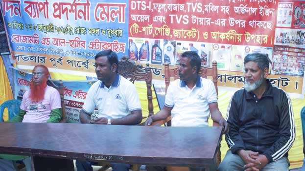 উক্ত অনুষ্ঠানে রোজামনি এন্ড আল হাসিব এন্টারপ্রাইজ এর সত্যাধিকারী রফিকুল ইসলাম এর সভাপতিত্বে প্রধান অতিথি হিসাবে উপস্থিত ছিলেন টিভিএস ইউরোগ্রিপ টায়ারের পক্ষ থেকে এক্সিকিউটিভ অফিসার মোঃ আব্দুর রহমান , মেসাস এইচ এফ এন্টারপ্রাইজে স্বত্বাধিকারী মোঃ হোসেন রহমান। মেলায় মোটরসাইকেলের সব রকমের পার্টস, ও সব ধরনের মোটরসাইকেল অরিজিনাল ইঞ্জিন অয়েল বিশেষ ডিসকাউন্টে অফার পাওয়া যাচ্ছে।