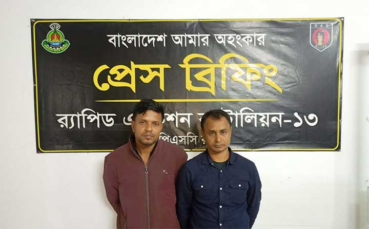র্যাব-১৩ জানায়,জেলার মিঠাপুকুর উপজেলার দুর্গাপুর ইউপির ৬ নম্বর ওয়ার্ডের শঠীবাড়ী বাজারের মেঘনা ব্যাংকের সামনে রংপুর থেকে ঢাকাগামী হাইওয়ে পাকা রাস্তায় চেকপোস্ট স্থাপন করে দুই মাদক ব্যবসায়ীর শরীর তল্লাশি করে প্যাকেটে মোড়ানো ১ হাজার ইয়াবাসহ গ্রেফতার করাহয়।গ্রেফতারকৃতরা হলেন কুমিল্লার কোতোয়ালি থানার শুভপুর গ্রামের মোঃ ইকবাল হোসেনের ছেলে মোঃ সাইফুল ইসলাম ও রংপুরের পীরগঞ্জ থানার বাগদুয়ার রসুলপুর গ্রামের মোঃ আব্দুল মান্নানের ছেলে মোঃ নাজমুল ইসলাম। মিঠাপুকুর থানায় মাদক নিয়ন্ত্রন আইনে একটি মাদক মামলা দায়ের করা হয়েছে।