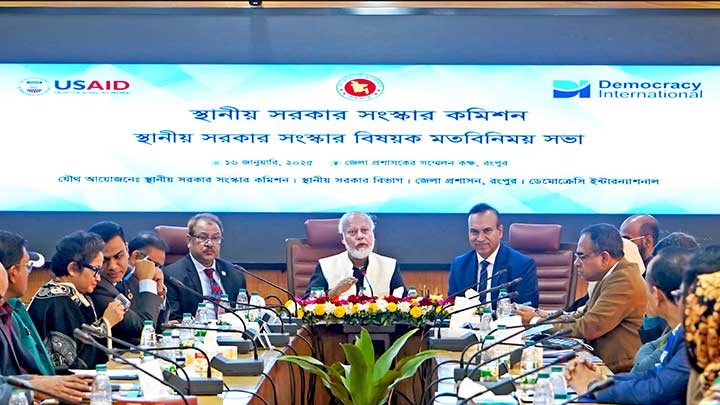 রংপুরে স্থানীয় সরকার সংস্কার বিষয়ক মতবিনিময় সভা অনুষ্ঠিত হয়েছে। বৃহস্পতিবার (১৬ই জানুয়ারি) দুপুরে রংপুর জেলাপ্রশাসনের সম্মেলনকক্ষে এই মতবিনিময় সভায় প্রধান অতিথি হিসাবে উপস্থিত ছিলেন স্থানীয় সরকার সংস্কার কমিশনের প্রধান অধ্যাপক ড. তোফায়েল আহমেদ। স্থানীয় সরকার সংস্কার কমিশন, স্থানীয় সরকার বিভাগ, রংপুর জেলাপ্রশাসন এবং ডেমোক্রেসি ইন্টারন্যাশনাল যৌথভাবে এই সভার আয়োজন করে।