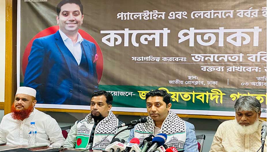 বৃহস্পতিবার (৩ অক্টোবর) জাতীয় প্রেসক্লাবের তফাজ্জল হোসেন মানিক মিয়া হলে এনডিএম কর্তৃক আয়োজিত প্যালেস্টাইন এবং লেবাননে ইসরায়েলের আগ্রাসনের বিরুদ্ধে "কালো পতাকা প্রদর্শন" কর্মসূচিতে সভাপতির বক্তব্যে এসব কথা বলেন ববি হাজ্জাজ।