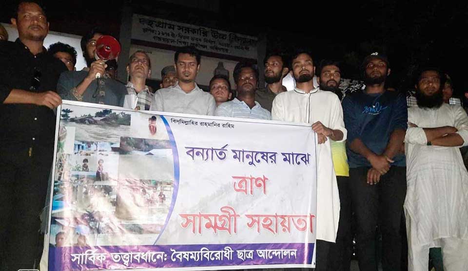 দহগ্রাম ইউনিয়নের বেশি বন্যা কবলিত ৮ ও ৯ নম্বর ওয়ার্ডের বিভিন্ন এলাকার পরিবারের মাঝে বৈষম্যবিরোধী ছাত্র আন্দোলনের কেন্দ্রীয় প্রতিনিধি দল ও জেলা, উপজেলার নেতাকর্মীরা সরেজমিনে গিয়ে এবং জেলা ও উপজেলা প্রশাসনের সহায়তায় এসব ত্রাণ সামগ্রী বিতরন করেন।