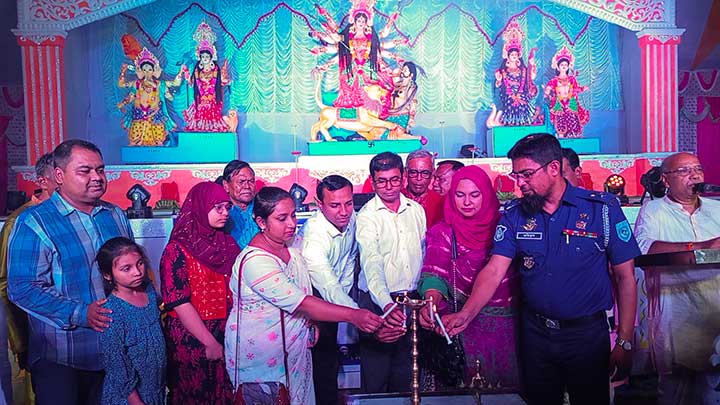 এ সময় প্রধান অতিথি হিসেবে উপস্থিত থেকে দুর্গোৎসব উদ্বোধন করেন প্রশাসক রকিব হায়দার, বিশেষ অতিথি হিসেবে উপস্থিত ছিলেন জেলা পুলিশ সুপার তরিকুল ইসলাম। আরো উপস্থিত ছিলেন নির্বাহী অফিসার, জেলা উদযাপন পরিষদের সভাপতি হীরালাল রায় এবং পূজা উদযাপন কমিটির সদস্যবৃন্দ প্রমুখ।