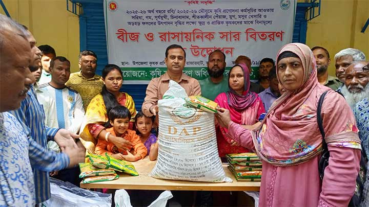 রাজারহাটে ২০২৫-২০২৬ অর্থবছরের বরি মৌসুমের কৃষি প্রণোদনা কর্মসূচীর অংশ হিসেবে ক্ষুদ্র ও প্রান্তিক কৃষকের মাঝে বিনামূল্যে বীজ ও রাসায়নিক সার বিতরণ করা হয়েছে।
