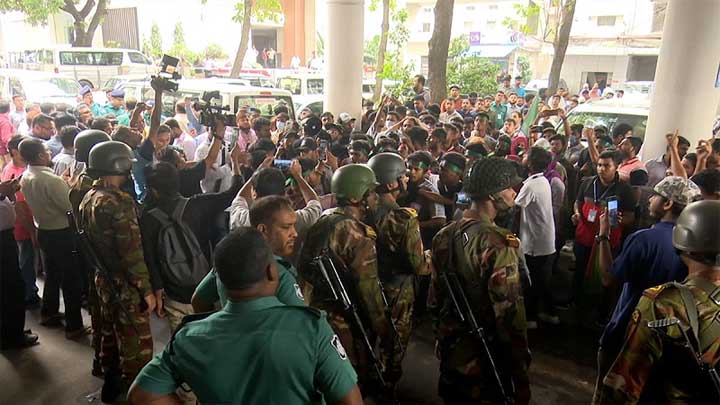 গতকাল বুধবার এইচএসসি ও সমমান পরীক্ষার ফল পুনরায় প্রকাশের দাবিতে শতাধিক শিক্ষার্থী সচিবালয়ে ঢুকে পড়েন। একপর্যায়ে বিক্ষোভরত শিক্ষার্থীদের লাঠিপেটা করে আইনশৃঙ্খলা বাহিনীর সদস্যরা। এ সময় তাড়া খেয়ে ছত্রভঙ্গ হয়ে যান শিক্ষার্থীরা। তাদের মধ্যে কিছু শিক্ষার্থী সচিবালয়ের ভেতরে আটকা পড়েন। পরে তাদেরকে আটক করে পুলিশের প্রিজনভ্যানে তোলা হয়।