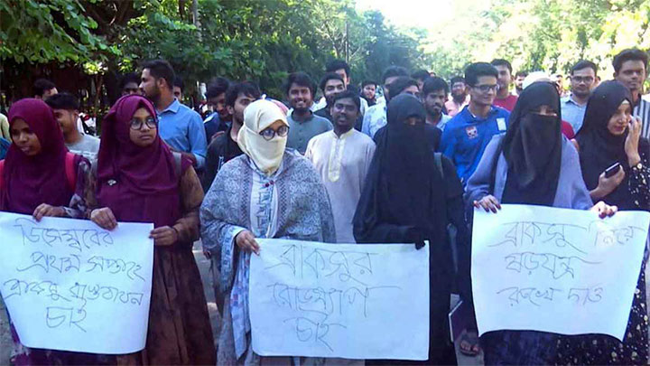 মঙ্গলবার (১৮ নভেম্বর) দুপুরে প্রশাসনিক ভবনের দক্ষিণ গেটে শিক্ষার্থীরা প্রথমে মানববন্ধন করে বিক্ষোভ মিছিল নিয়ে উপাচার্যের কক্ষের সামনে তারা অবস্থান কর্মসূচি পালন করেন। এ সময় শিক্ষার্থীরা ‘ব্রাকসু’র নির্বাচন নিয়ে টালবাহানা, চলবে না চলবে না’।ডিসেম্বরের প্রথম সপ্তাহের মধ্যে নির্বাচন দিতে হবে।এবং ‘ব্রাকসু নিয়ে ষড়যন্ত্র চলবে না সহ নানা স্লোগান দেন।