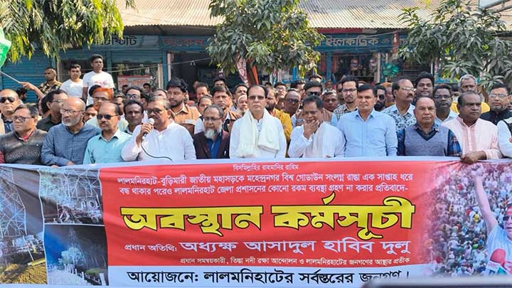 শনিবার (২৯ নভেম্বর) সকাল ১০টায় লালমনিরহাটের মিশনমোড়ে জেলার সর্বস্তরের জনগণের ব্যানারে ঘণ্টাব্যাপী এই অবস্থান কর্মসূচি পালিত হয়।