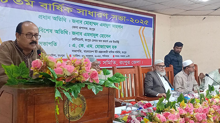 রংপুর জেলা ইট প্রস্তুতকারক মালিক সমিতির সভাপতি একেএম মোজাম্মেল হকের সভাপতিত্বে বার্ষিক সাধারণ সভায় বিশেষ অতিথির বক্তব্য রাখেন রংপুর চেম্বার অব কমার্স অ্যান্ড ইন্ডাস্ট্রির প্রেসিডেন্ট এমদাদুল হোসেন।