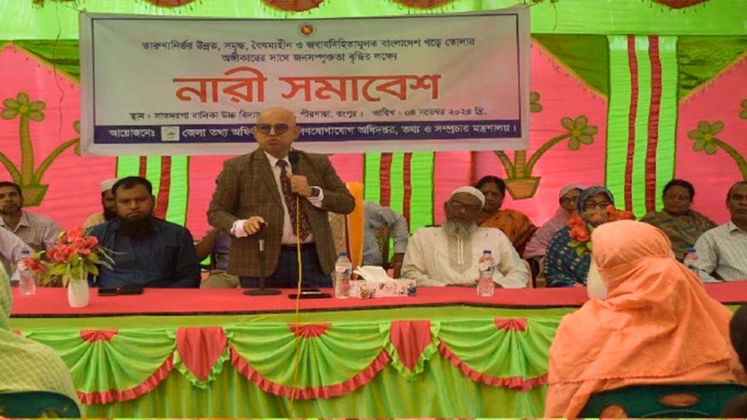 নারীদের জীবনমান উন্নয়নের লক্ষ্যে রংপুর জেলা তথ্য অফিসের উদ্যোগে নারী সমাবেশ অনুষ্ঠিত হয়েছে। সোমবার (৪ঠা নভেম্বর) রংপুরের পীরগাছা উপজেলার সাতদরগা বালিকা উচ্চ বিদ্যালয় প্রাঙ্গণে অনুষ্ঠিত এই সমাবেশে প্রধান অতিথি হিসাবে উপস্থিত ছিলেন রংপুর জেলা তথ্য অফিসের পরিচালক ড. মো: মোফাকখারুল ইকবাল।