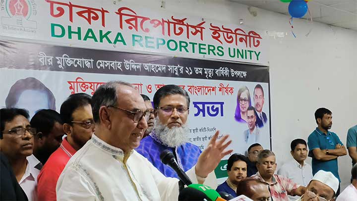 তিনি আজ মঙ্গলবার দুপুরে রাজধানীর সেগুনবাগিচাস্থ ঢাকা রিপোর্টার্স ইউনিটি (ডিআরইউ) মিলনায়তনে ‘মুক্তিযুদ্ধের চেতনা ও আজকের বাংলাদেশ’ শীর্ষক এক আলোচনা সভায় প্রধান অতিথির বক্তৃতায় এ আহবান জানান। বীর মুক্তিযোদ্ধা মেসবাহ উদ্দিন আহমেদ সাবু’র ২১তম মৃত্যুবার্ষিকী উপলক্ষে ‘মুক্তিযুদ্ধের প্রজন্ম’ ও ‘প্রজন্ম একাডেমি’ যৌথভাবে এ আলোচনা সভার আয়োজন করে। এ আলোচনা সভায় প্রধান বক্তা হিসেবে উপস্থিত ছিলেন বিএনপি’র স্থায়ী কমিটির সদস্য গয়েশ্বর চন্দ্র রায়।