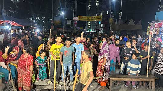 মঙ্গলবার (৫ নভেম্বর) রাত ৯টা থেকে রংপুর নগরীর কারামতিয়া মসজিদ মোড়ে অবরোধ করে বিক্ষোভ করে সেখানকার পিঠা, চা,পান, জুস সহ ফুটপাতের ব্যবসায়ীরা। এ সময় তাদের সাথে যোগ দেয় পরিবারের লোকজন। তারা লাঠি হাতে বিক্ষোভ করতে থাকে। অবরোধকারী ফুটপাতের দোকানী লাভলী বেগম জানান, ‘আমরা এই মোড়ের মধ্যে ফুটপাতে চা বিক্রি করে খাই। স্থানীয় মুনশিপাড়ার কিছু ছেলে সহ কয়েকজন যুবক প্রতিদিনই আমাদের দোকানে এসে ২০-৩০ টাকার চা বিড়ি খায়। টাকা দেয় না। আমরা কিছু বলিও না। কিন্তু সোমবার (৪ নভেম্বর) থেকে বায়না ধরেছে ওদেরকে দোকান প্রতি প্রতিদিন ২৫০ টাকা করে চাঁদা দিতেই হবে। আমরা গরিব মানুষ। দিন আড়াইশ টাকা কামাই করা আমাদের জন্য কস্টকর। তাদের কিভাবে চাঁদা দিবো।তারা আমাদের হুমকি দিয়েছে। টাকা না দিলে কেউ দোকান খুলতে পারবে না। আমরা ভয়ে সন্ধায় দোকান খুলেছি। এশার নামাজের পর ওরা এসে টাকার দাবি করতে থাকে। তখন আমরা দিতে অস্বীকৃতি জানালে ওরা আমাদের দোকানে দোকানে হামলা চালায়।’এরপর আমরা সবাই মিলে তাদের বাধা দেই। আমাদের সাথে এলাকার লোকজন আসে। তখন তারা পালিয়ে যায়। এখন আমরা বিক্ষোভ করতেছি। আমাদের কর্মের নিরাপত্তা, জীবনের নিরাপত্তা কে দিবে। ওরা এখন আমাদের বাড়ি-ঘর ভাংচুরের হুমকি দিচ্ছে।