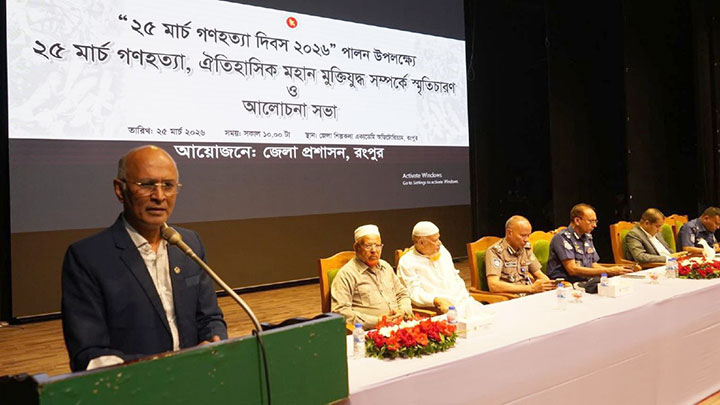২০২৬ গণহত্যা দিবস ও ঐতিহাসিক মহান মুক্তিযুদ্ধ সম্পর্কে স্মৃতিচারণ ও আলোচনাসভা অনুষ্ঠিত হয়েছে। বুধবার (২৫ মার্চ) সকালে রংপুর জেলা শিল্পকলা