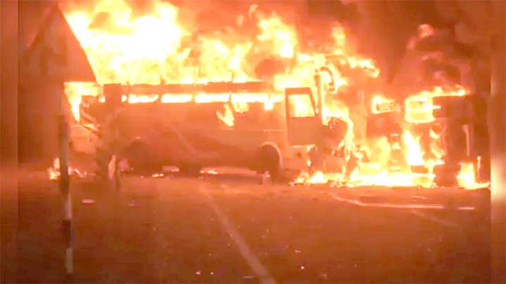 ভারতের অন্ধ্রপ্রদেশে যাত্রীবাহী বাস ও একটি টিপার লরির মুখোমুখি সংঘর্ষের পর আগুন লেগে অন্তত ১২ জনের মৃত্যু হয়েছে। এ ঘটনায় আরও প্রায় ২০ জন আহত হয়েছেন।